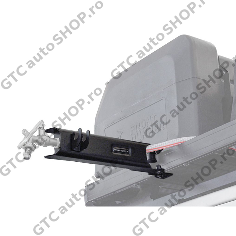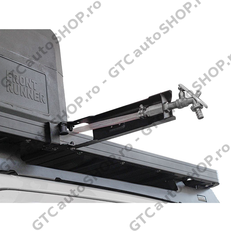 Se monteaza pe profilul lateral al portbagajului Front Runner. Se extinde la 90 de grade fata de profilul portbagajului, permitand robinetului sa degajeze apa la o distanta de 30 cm fata de vehicul.