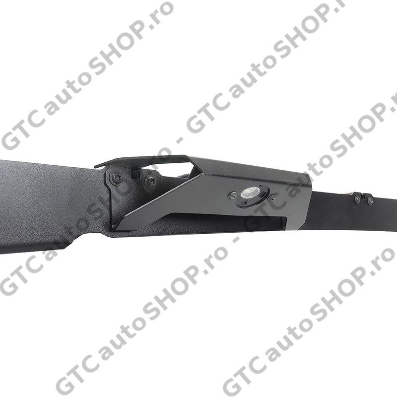 Suportul manerului este fabricat din otel si acoperit cu vopsea tip black powder. Se poate monta pe orice laterala a portbagajului.