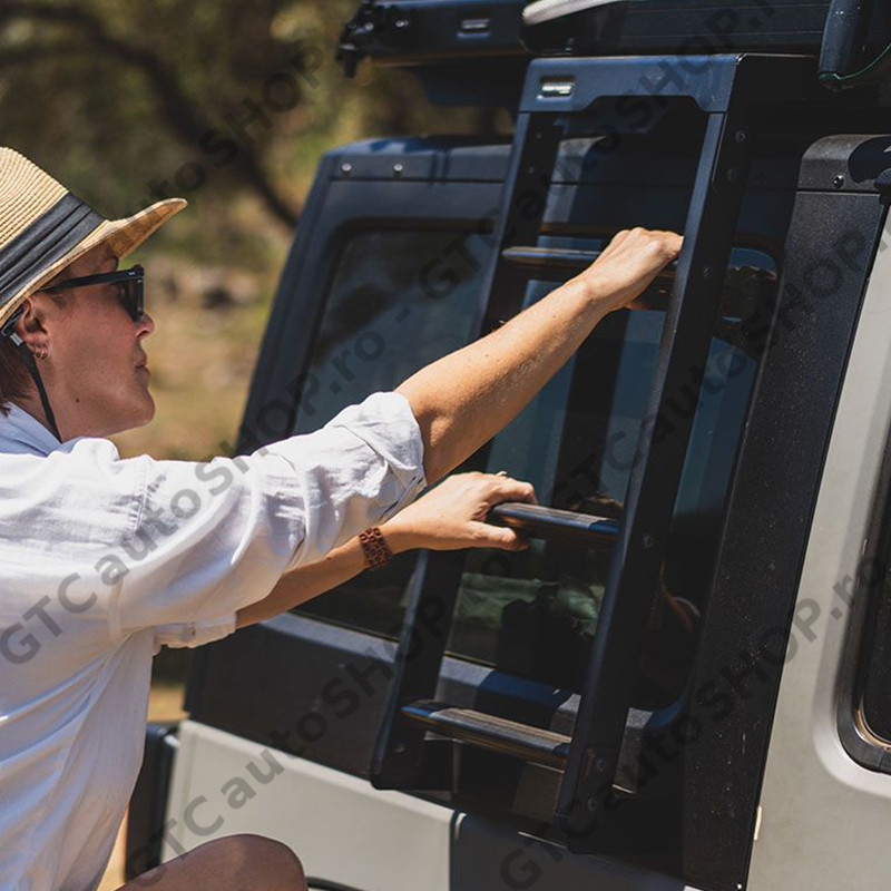 Cu aceasta scara de la Front Runner usurati accesul la portbagajul Front Runner de pe Jeep Wrangle JK. Se monteaza pe lateralul autoturismului si este prevazuta cu trei trepte. Scara puternica din otel este perfecta pentru a-ti pune rapid echipamentul sus pe portbagaj.