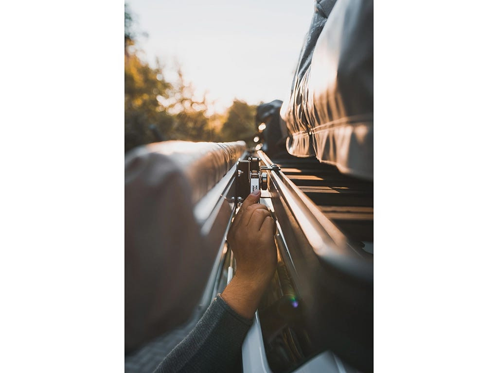 - Odata ce aceste suporturi sunt montate pe portbagajul Front Runner, nu sunt necesare instrumente suplimentare pentru a scoate sau remonta umbrarul.