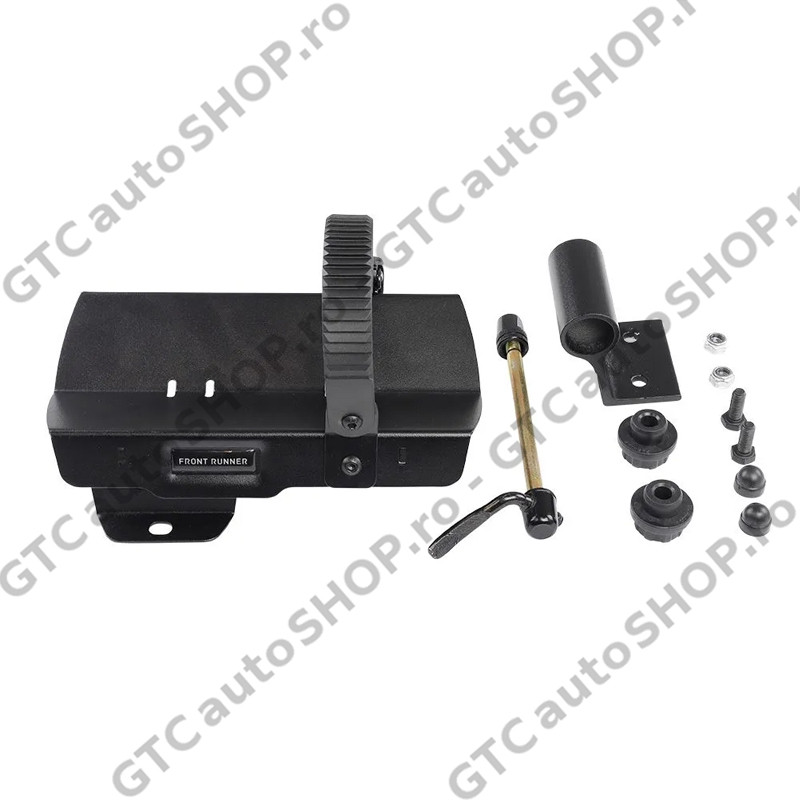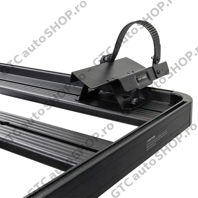 Suport vertical pentru bicicleta, fabricat din otel si aluminiu rezistent. Acoperit cu un strat de vopsea in camp electrostatic, in aceeasi finisare durabila ca portbagajele Front Runner, pentru o rezistenta sporita. Clema pentru furca frontala are un sistem de prindere rapida compatibil cu toate tipurile standard de prinderi pe furca.