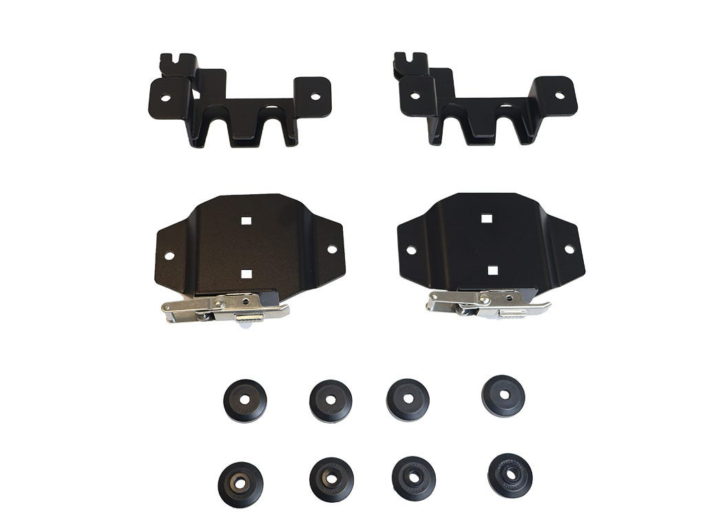 Fixare sigura in pozitie cu ajutorul a 2 cleme prevazute cu sistem de siguranta incorporat. Pentru un plus de siguranta, clemele pot fi incuiate folosind lacatul Front Runner (cod RRAC134, vandut separat).