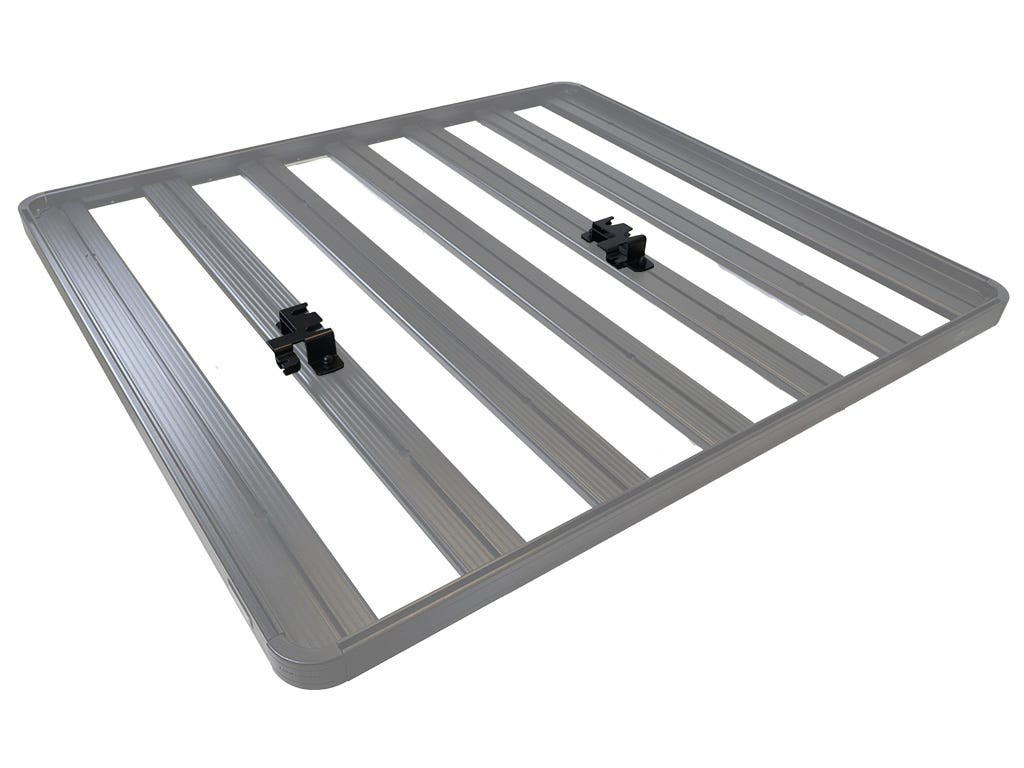 Doua suporturi de baza cu profil redus sunt prinse in suruburi pe un portbagaj Front Runner, in timp ce doua bucse autoaliniabile sunt fixate pe canalul de montaj al dusului folosind suruburile incluse.