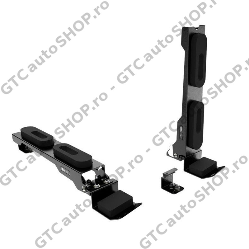 Aceste doua suporturi mobile prind in siguranta placa de surf pe pozitie verticala pe ambele parti ale pentru transportare usoara si pentru a elibera spatiul de pe portbagaj pentru a transporta alte echipamente precum caiace, biciclete, apa, combustibil etc.