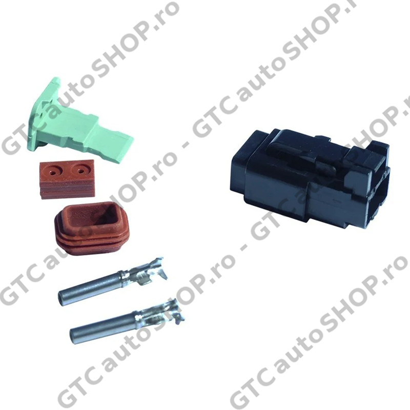 Conector DT (Deutsch) tip mama cu doi pini, ideal pentru industria auto, in special pentru legaturile la instalatiile electrice ale proiectoarelor, barelor LED etc.