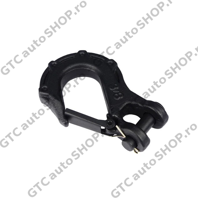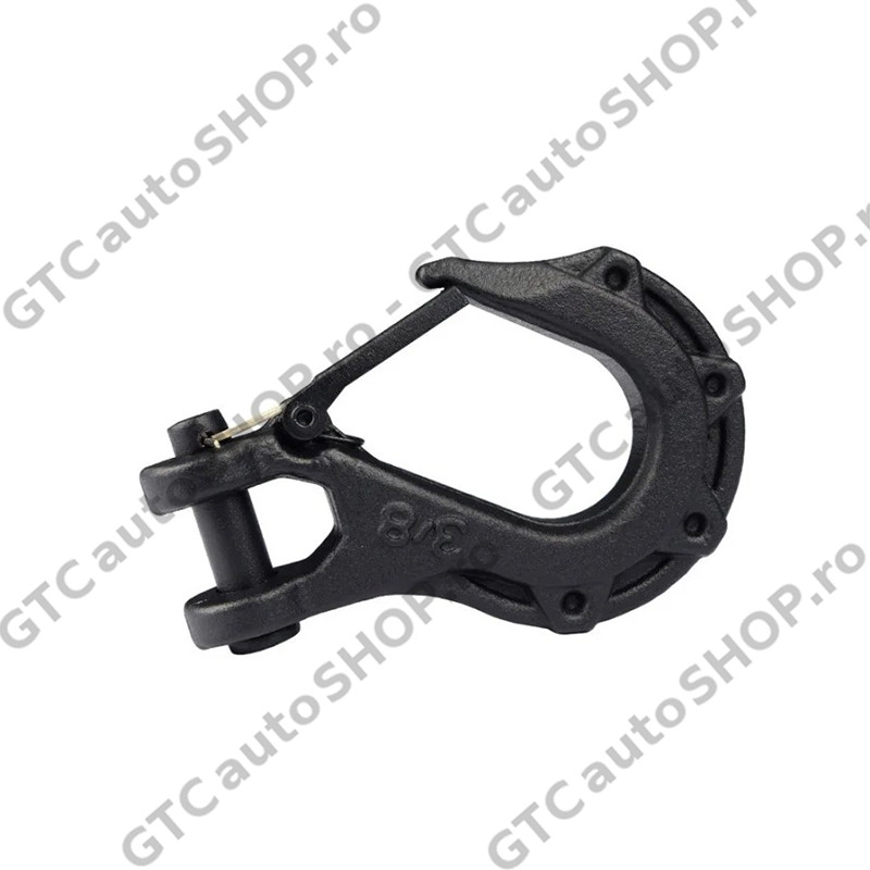 Carlig de tractare 3/8'' (5.5 tone) ranforsat si detasabil, ideal pentru cablurile de troliu fie metalice sau sintetice, cu grosime de pana la 10mm.