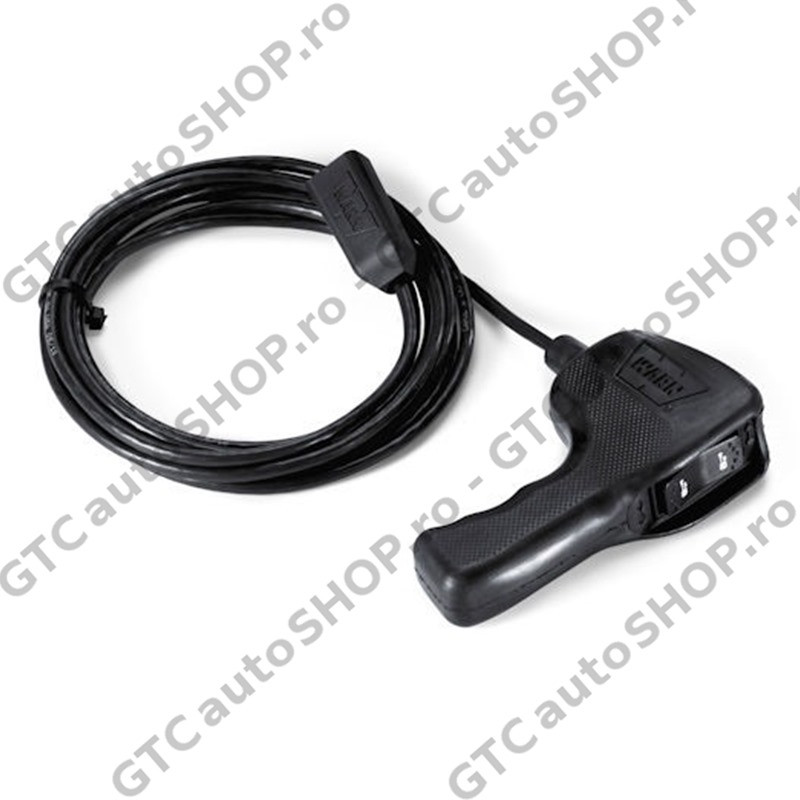 Telecomanda Warn cu cablu dedicata modeleleor de troliu Warn cu mufa cu conector ‘’tip D'' cu 5 pini; merge si la unele modele cu mufa cu 3 pini.