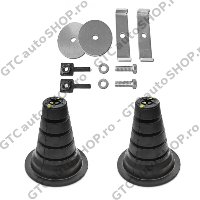 Contine elementele necesare pentru montarea si functionarea corecta a arcurilor elicoidale spate, atat cele fara inaltare cat si cele cu inaltare.
