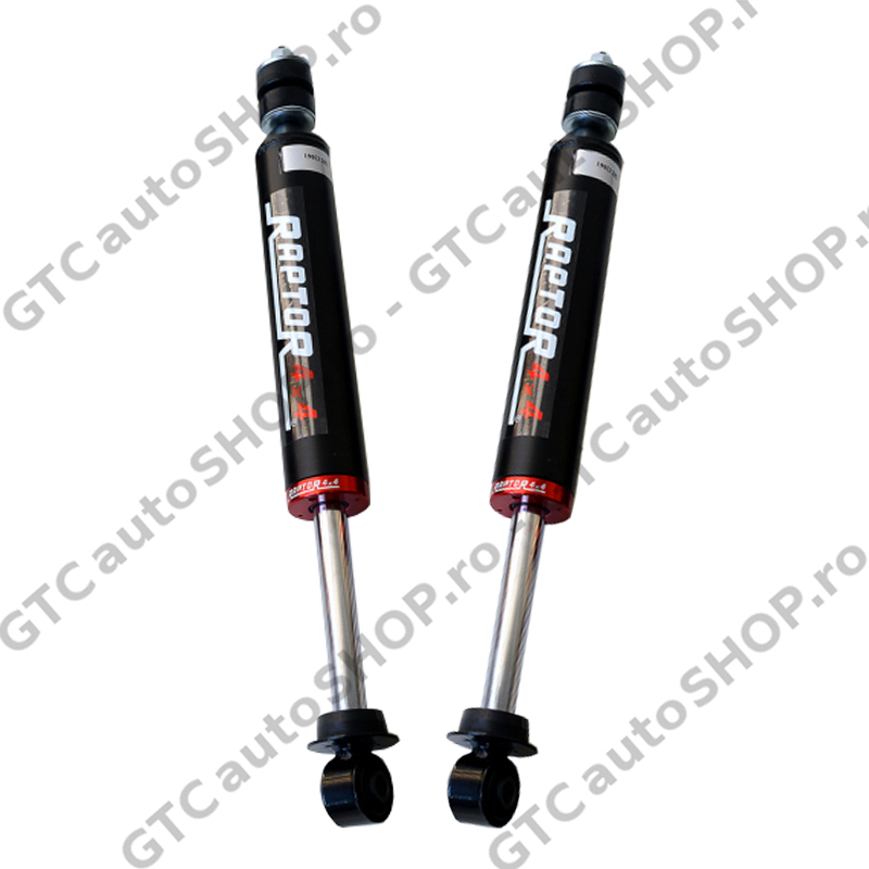Amortizoarele sunt vopsite in culoare neagra avand la capat inel de fixare rosu cu brandul Raptor 4x4.