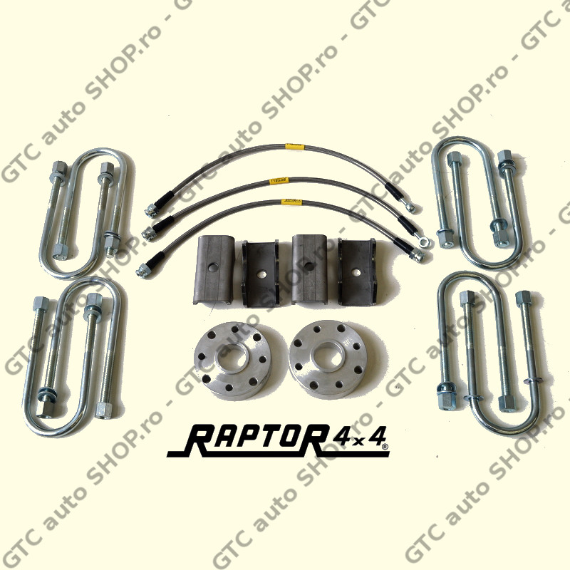 Kitul furnizeaza piesele necesare pentru relocarea arcurilor cu foi deasupra puntilor, astfel incat se realizeaza ridicarea masinii fara inlocuirea arcurilor cu foi.
