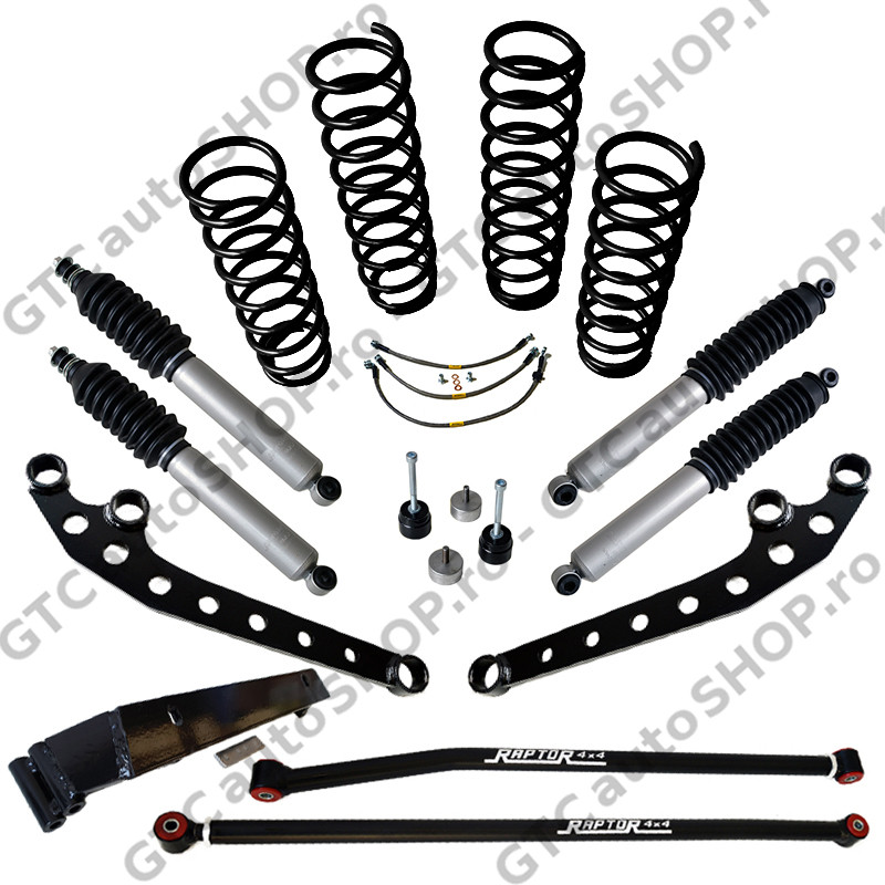 Kit suspensie Raptor 4x4 "Complete Trial" pentru Suzuki Jimny Sierra, fabricatie dupa 2018 - asigura o inaltare de 6cm si o mobilitate sporita.