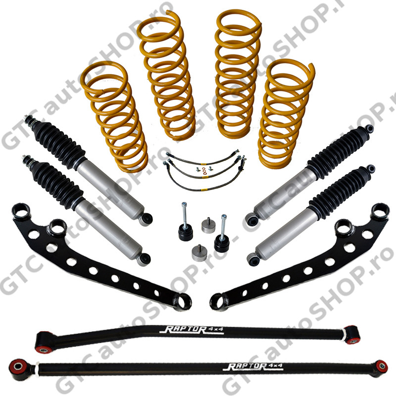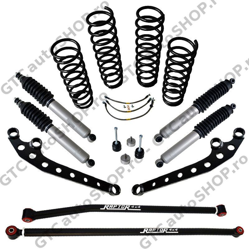 Kitul de suspensie este cel mai complet kit pentru Jimny, care permite abordarea unui offroad extrem dar si o utilizare corecta pe sosea. Raptor 4x4 pune la dispozitie un kit complet, cu elemente compatibile care genereaza un comportament confortabil dar, totodata, eficient.