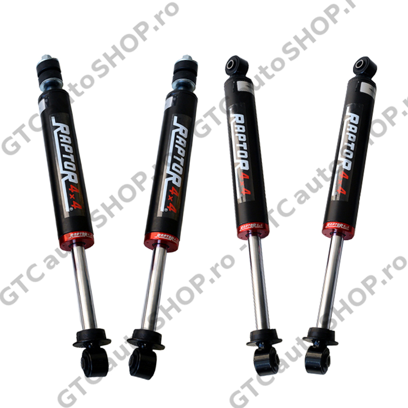 Amortizoarele sunt vopsite in culoare neagra avand la capat inel de fixare rosu cu brandul Raptor 4x4.