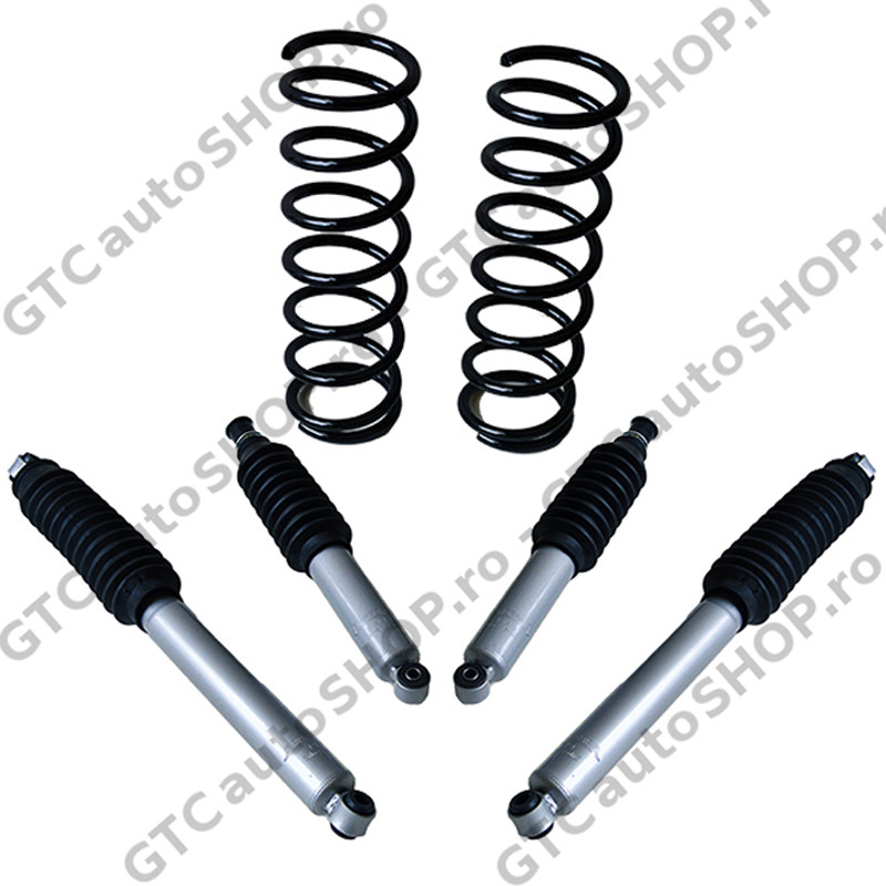 Kitul contine 4 amortizoare si arcurile spate cu inaltare; fata se va ridica prin reglarea barelor de torsiune ale masinii.