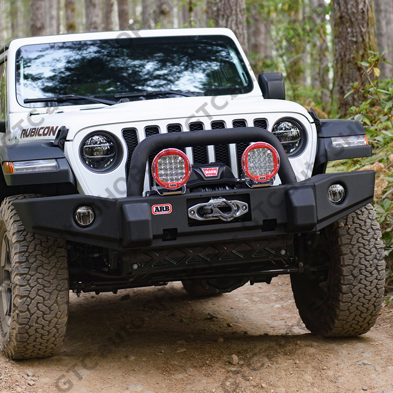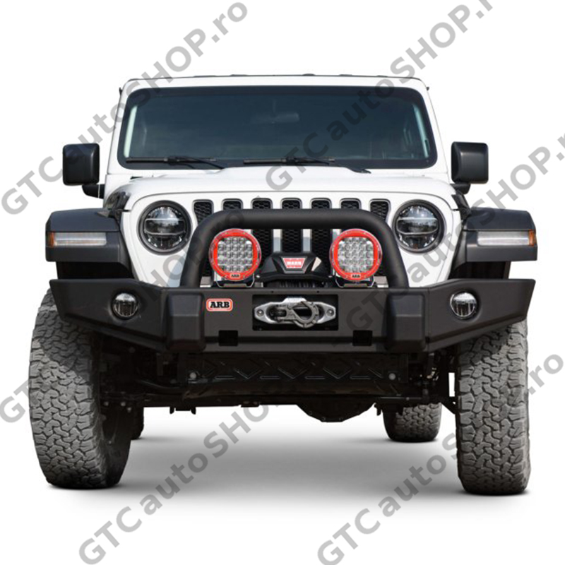 Bara ARB cu design unic, dedicat modelului JL. Bara este proiectata pentru posesorii de Jeep Wrangler JL care vor protectia si functionalitatea barilor ARB dar si o personalizare pentru noul JL, care include montarea troliului vizibil, un bullbar central cu suport de antene CB, suporti de proiectoare pe bara, placa de numar rabatabila, culoare negru mat texturat, asemanatoare cu overfenderele masinii.