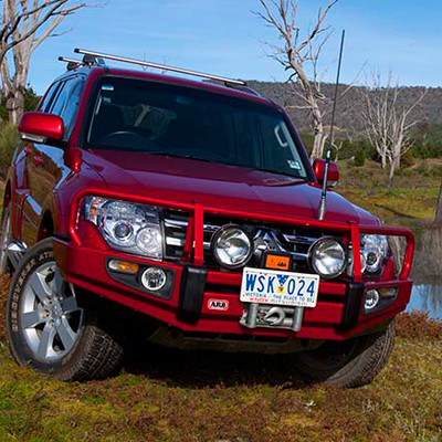 Bara de protectie fata marca ARB Australia, compatibila cu Mitsubishi Pajero V80, fabricatie 2007-12.2011. Se poate monta si pe modelul dupa 2012, dar bara originala trebuie decupata, pentru a se potrivi cu bara ARB.