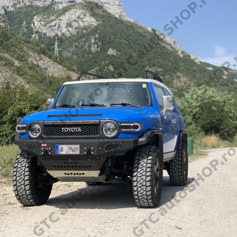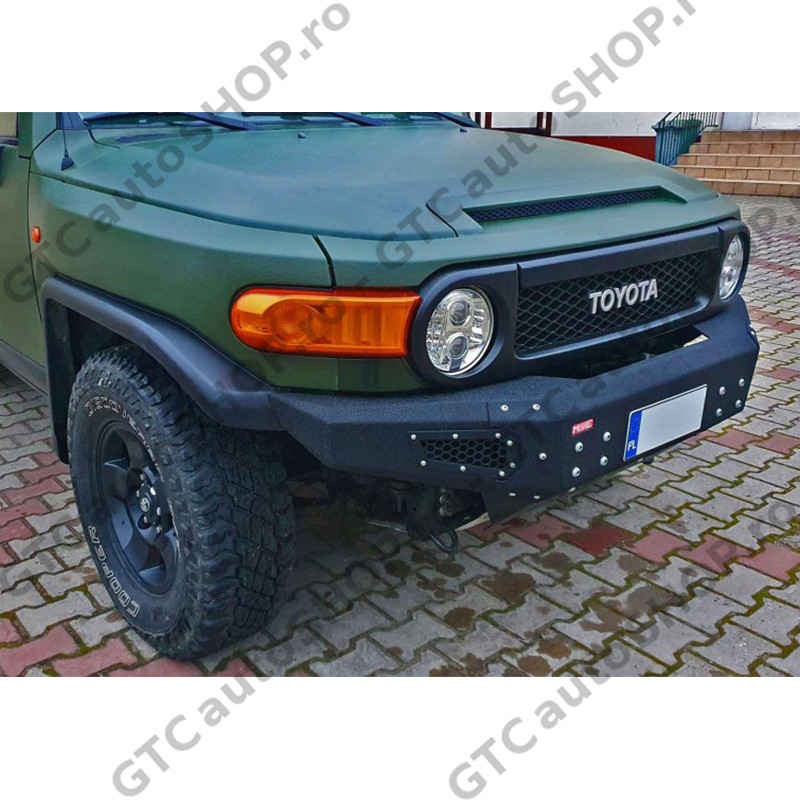 Bara de protectie fata pentru Toyota FJ Cruiser, productie dupa 2006, cu suport de troliu incorporat.