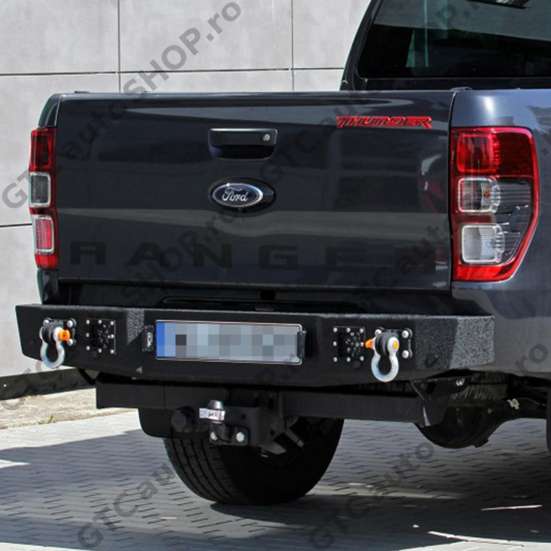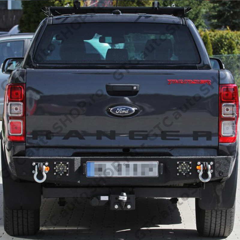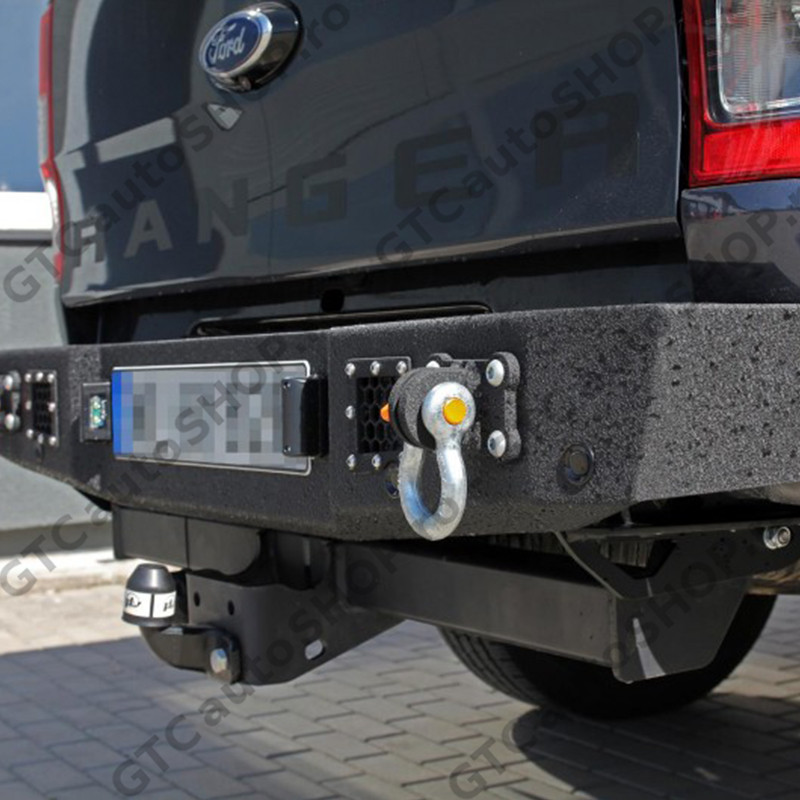 Bara protectie spate pentru Ford Ranger productie 2011-2022, care este prevazuta si cu posibilitatea montarii unui suport rabatabil de roata rezerva, Hi-Lift si canistra/canistre.