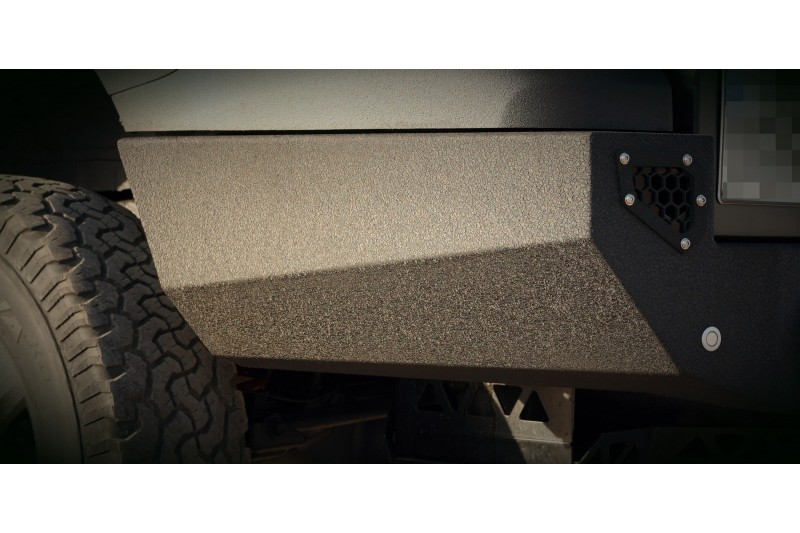 Bara de la MORE 4x4 este din otel si este vopsita cu vopsea structurala de culoare neagra, similara Raptor Coating. Este o bara solida dar care are forma cat mai apropiata de cea originala, permitand montarea unui carlig de remorcare OE sau echivalent.