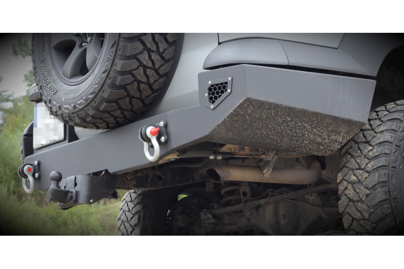 Bara de la MORE 4x4 este din otel si este vopsita cu vopsea structurala de culoare neagra, similara Raptor Coating. Este o bara solida dar care are forma cat mai apropiata de cea originala, permitand montarea unui carlig de remorcare OE sau echivalent.