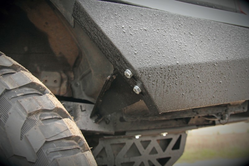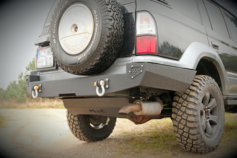 Bara de la MORE 4x4 este din otel si este vopsita cu vopsea structurala de culoare neagra, similara Raptor Coating. Este o bara solida dar care are forma cat mai apropiata de cea originala, permitand montarea unui carlig de remorcare OE sau echivalent.