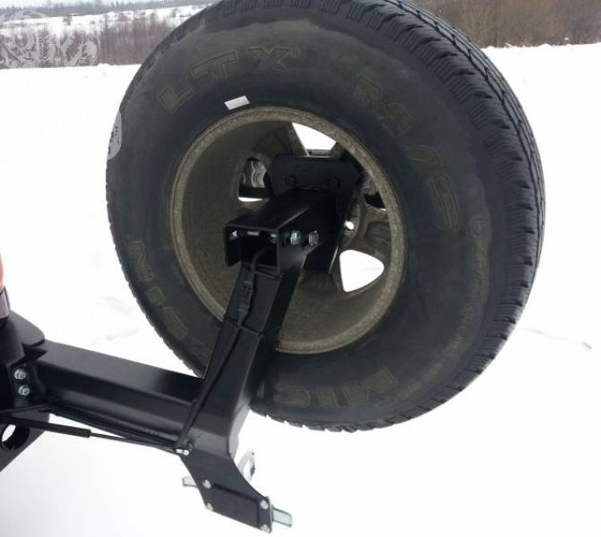 Permite montarea unei roti de rezerva, in conditii de siguranta si fara sa apara vibratii sau alte probleme. Acesta se fixeaza in gaurile speciale de pe bara.