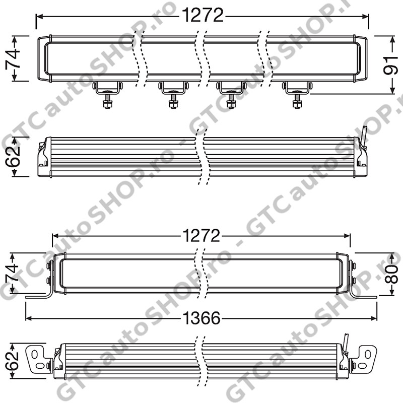 -Dimensiuni doar bara LED: 1272mm lungime x 62mm latime x 74mm inaltime