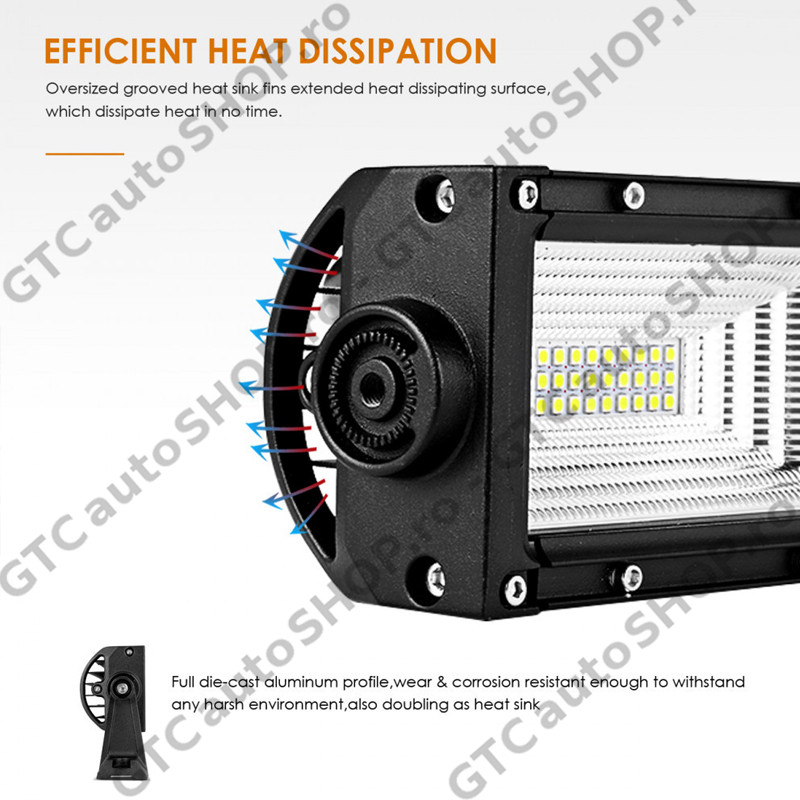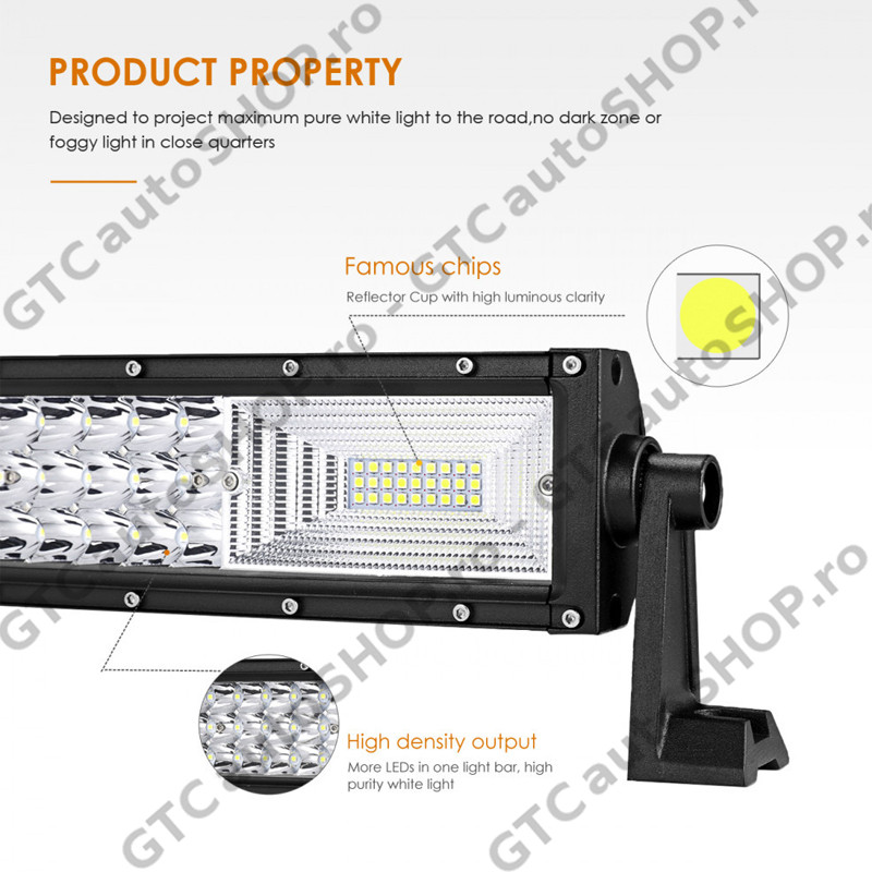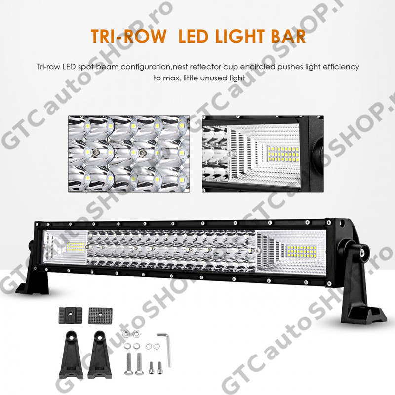 Bara LED Auto curbata 702W, cu trei randuri de leduri, 49200 Lumeni, 127 cm, Combo