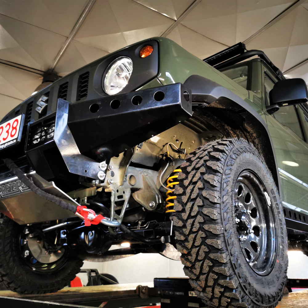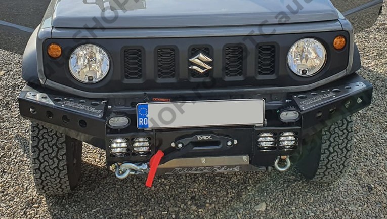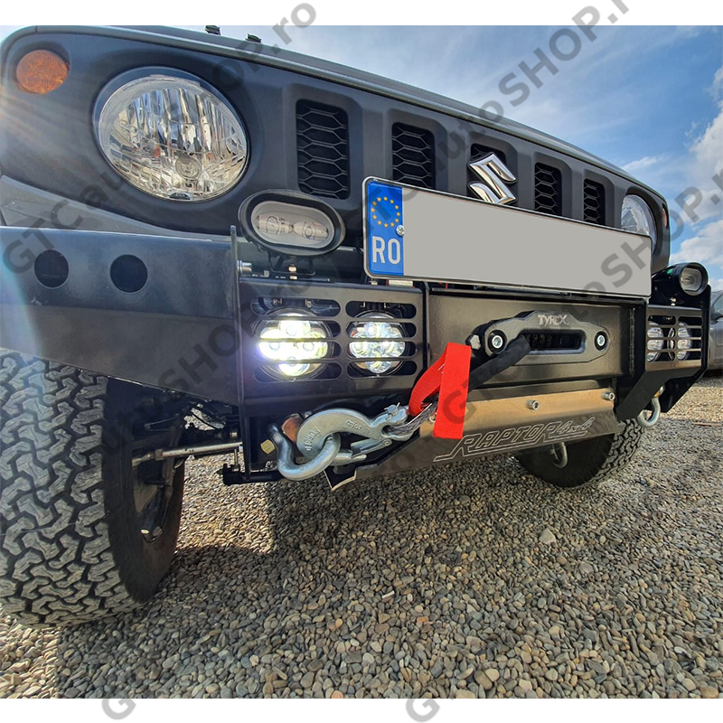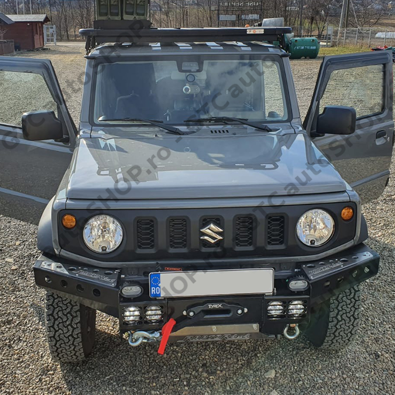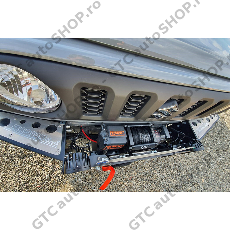 Bara fata Raptor 4x4 cu suport de troliu incorporat. Compatibila cu Suzuki Jimny cu motor pe benzina, fabricatie dupa 2018.