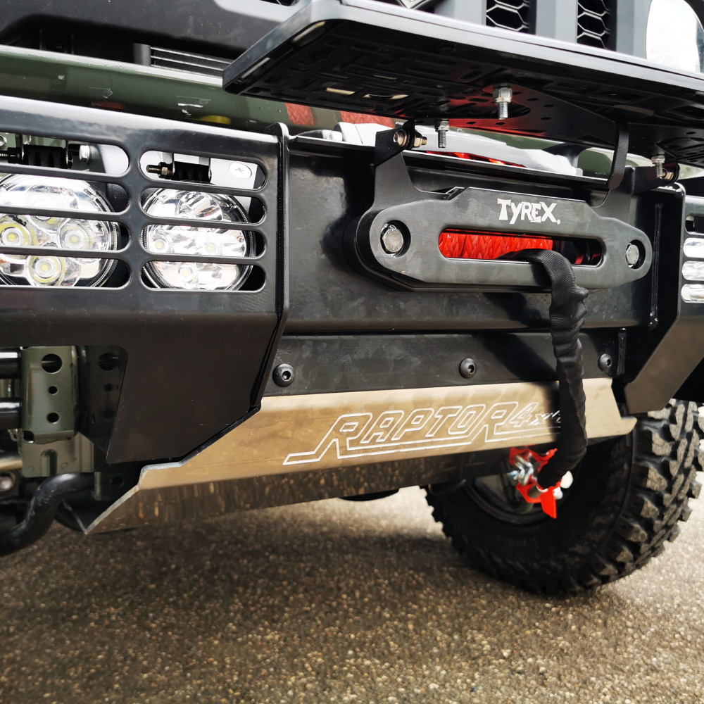 Bara include scut frontal si suport de troliu. Se pot monta trolii Tyrex de 8000lbs (necesita modificari la suportul de troliu si un adaptor de la fanta standard la fanta compacta) sau de 10000lbs.