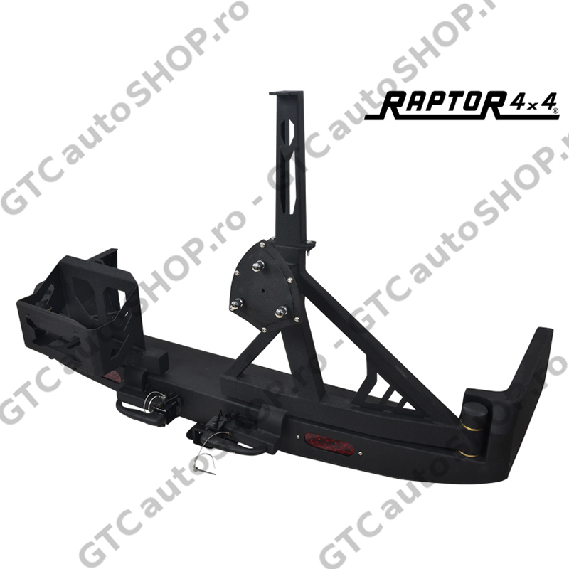 Bara de protectie spate este marca Raptor 4x4 Italia si este prevazuta cu suport de roata de rezerva si cu suport de canistra.