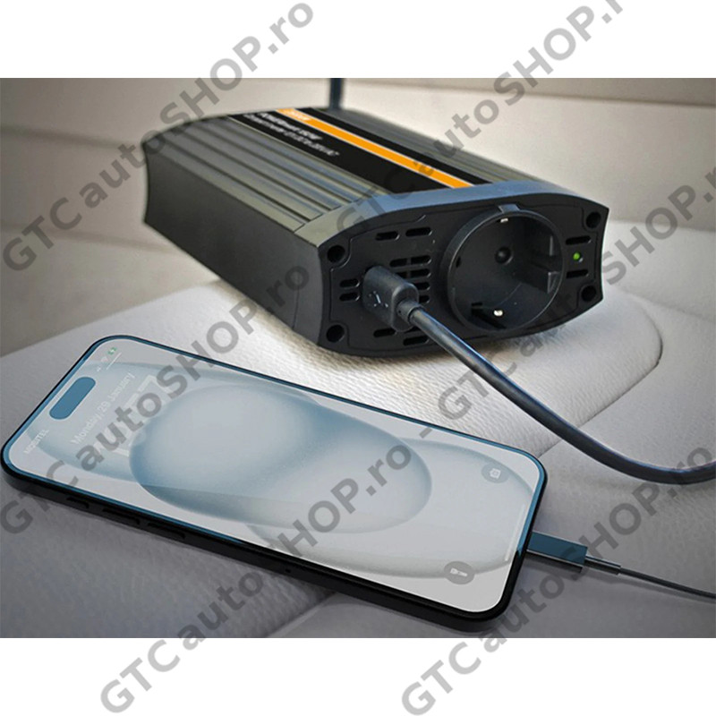 - Tip de unda: sinusoidala modificata, potrivit pentru majoritatea echipamentelor electronice