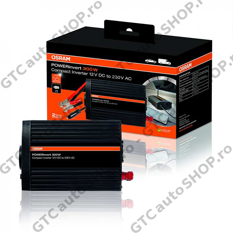 Invertorul OSRAM POWERinvert cu unda sinusoidala modificata 12V DC 300W este o solutie compacta pentru transformarea energiei 12V DC in 230V AC, oferind energie de retea direct din masina. Perfect pentru calatorii de afaceri, excursii sau vacante, acest invertor suporta dispozitive de pana la 300W, cum ar fi camerele digitale, laptopurile sau alte echipamente mici. Dispune de o priza USB de mare putere de 2.1A, ideala pentru incarcarea smartphone-urilor si tabletelor. Usor de utilizat, se conecteaza simplu la priza de 12V DC a vehiculului. Designul sau compact si usor garanteaza depozitare si transport intr-un mod convenabil.