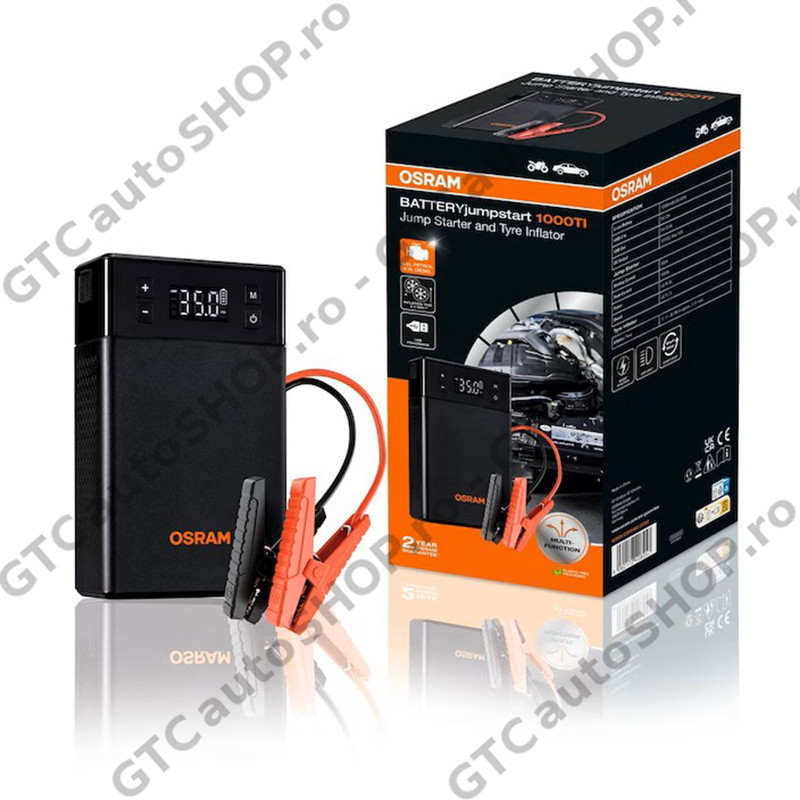 Fii pregatit pentru diverse situatii pe drum cu OSRAM BATTERYjumpstart 1000TI. Acest dispozitiv compact si multifunctional include cinci unelte utile intr-una, oferind suport esential in situatii de urgenta. Functia sa puternica de pornire este capabila sa readuca la viata vehiculele alimentate de 12V, inclusiv motoare pe benzina de pana la 5 litri si motoare diesel de pana la 3 litri. Chiar si daca bateria ta este complet descarcata, functia de boost ofera puterea suplimentara necesara pentru a te pune in miscare.