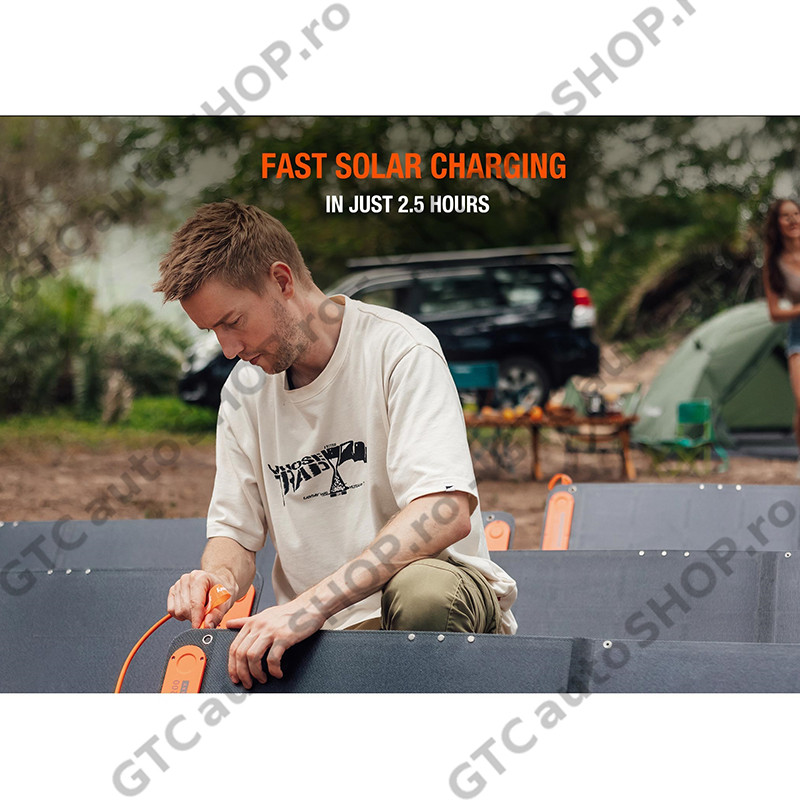 solare Jackery SolarSaga de 200W in doar 2.5 ore sau in doar 2 ore folosind o