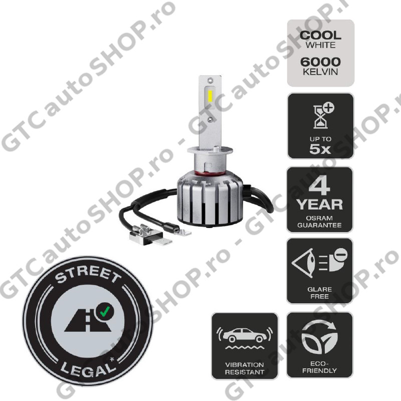 Nota! Pretul este pentru un set de 2 becuri LED H1 Osram Night Breaker
