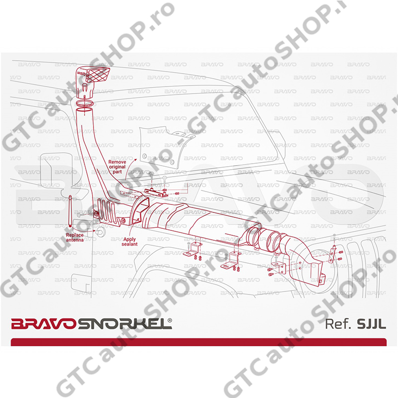 Snorkel Bravo pentru Jeep Wrangler JL, productie 2017 - prezent. Nu este compatibil cu motorizarea 3.0 Eco-Diesel!