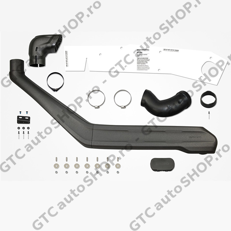 Kitul cuprinde snorkel, cap snorkel, sablon montaj si accesorii instalare.