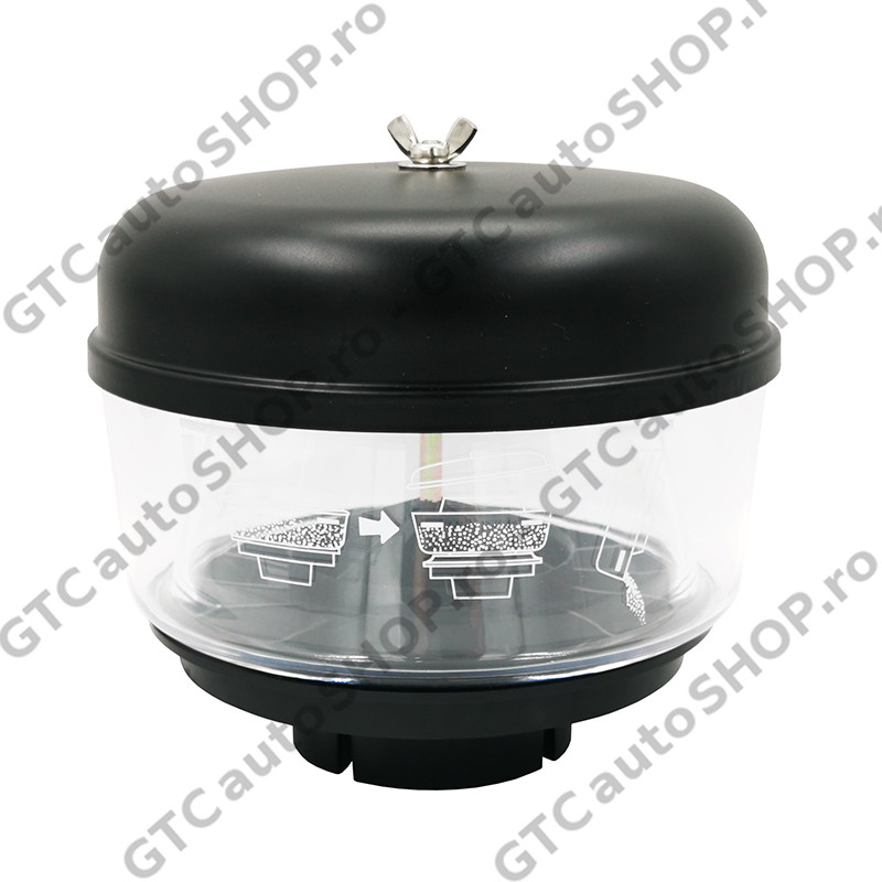 Foloseste efectul fortei centrifuge. Este prevazut cu capac demontabil pentru golire impuritati colectate.