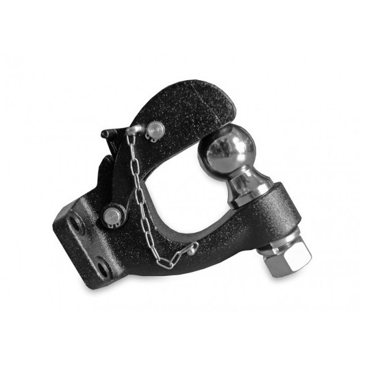 Carlig remorcare heavy-duty, dotat cu bila pentru tractare remorci dar si cu sistem de inchidere tip ochet, pentru a se putea folosi la recuperari / tractari cu sufe de recuperare.