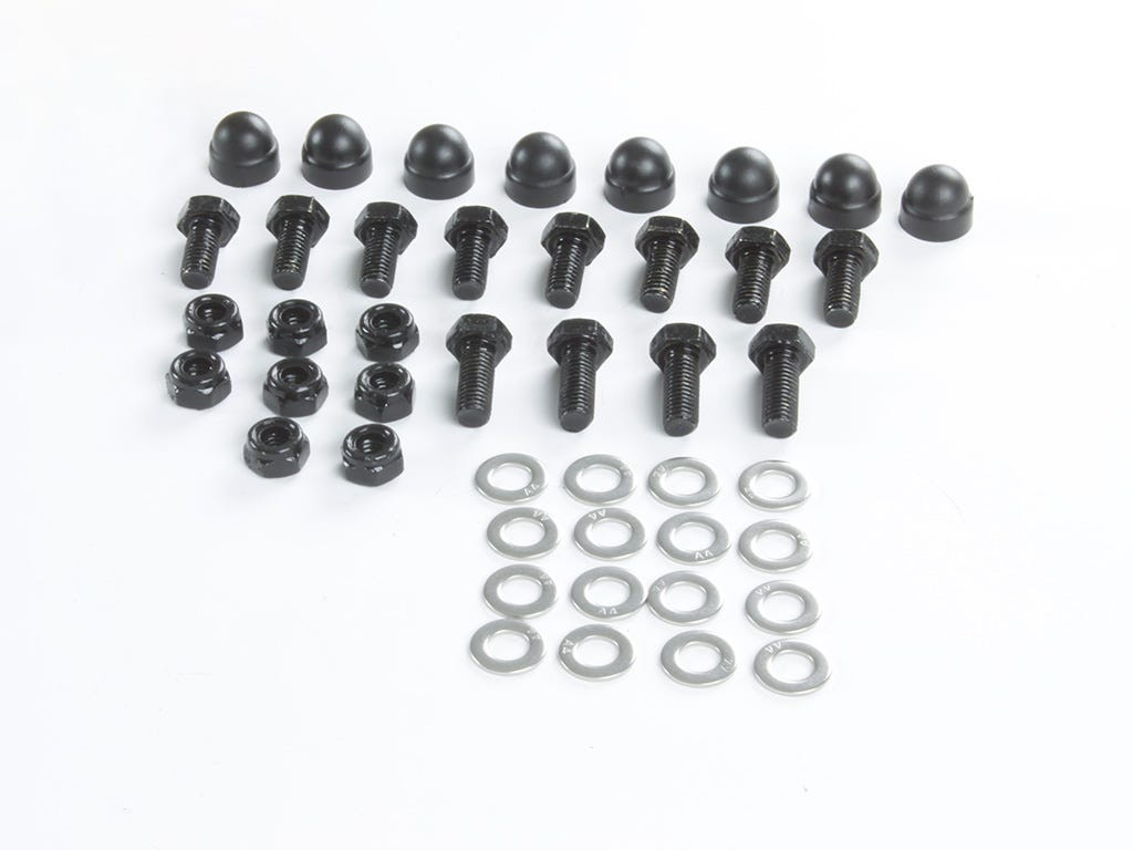 Un kit de șuruburi pentru fixarea accesoriilor Front Runner pe portbagajul tău.