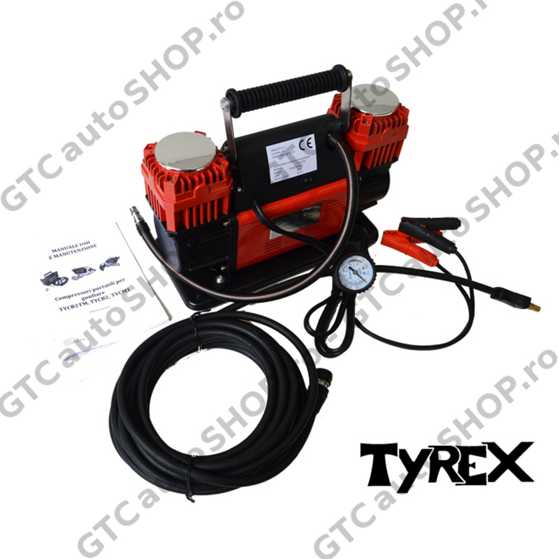 Compresor de aer Tyrex foarte puternic, cu debitul maxim de 300L/min, care poate umfla roti cu diametrul de peste 35''.