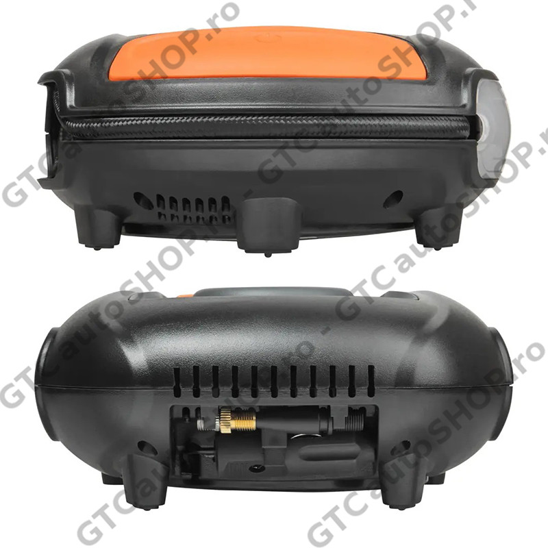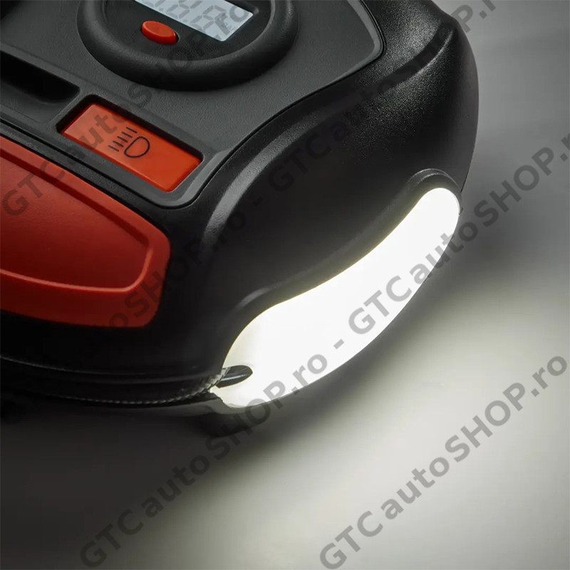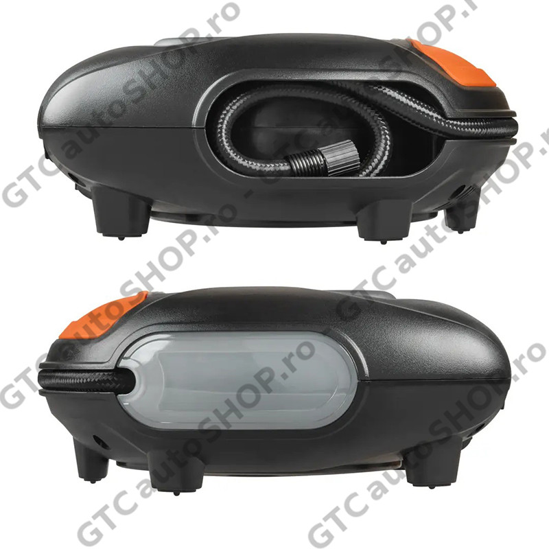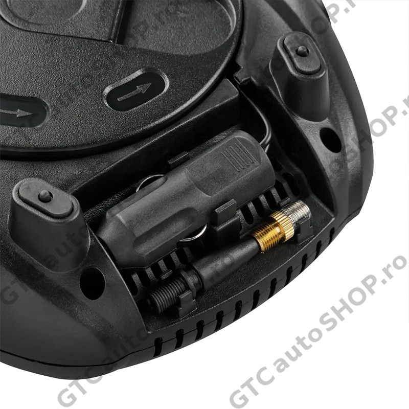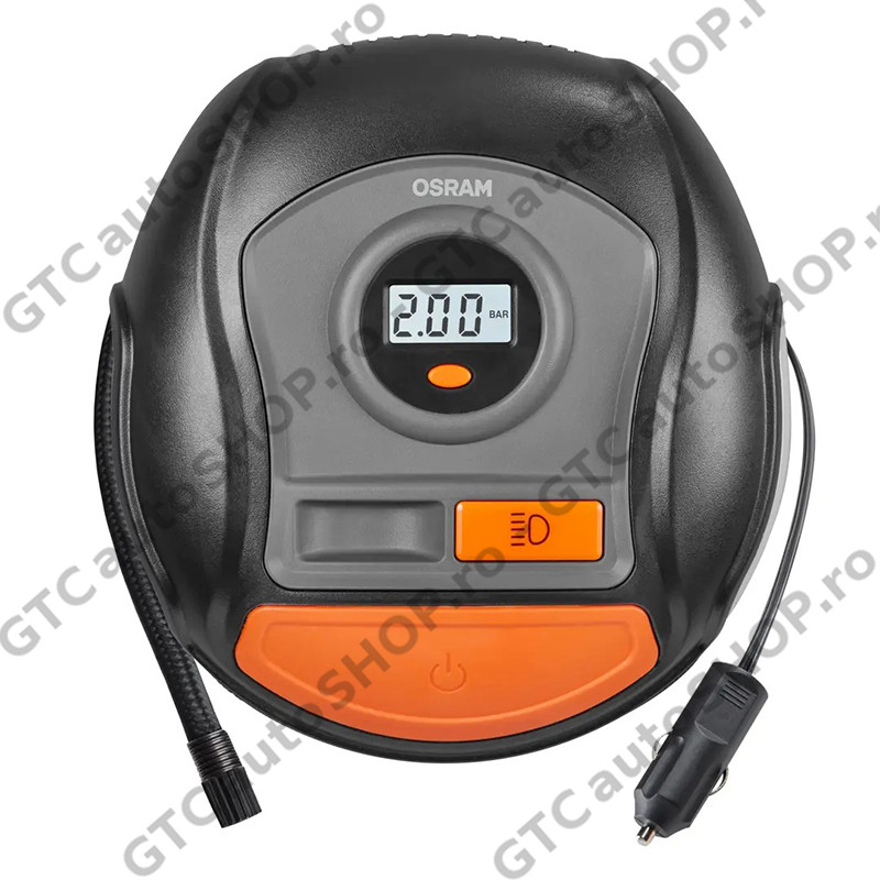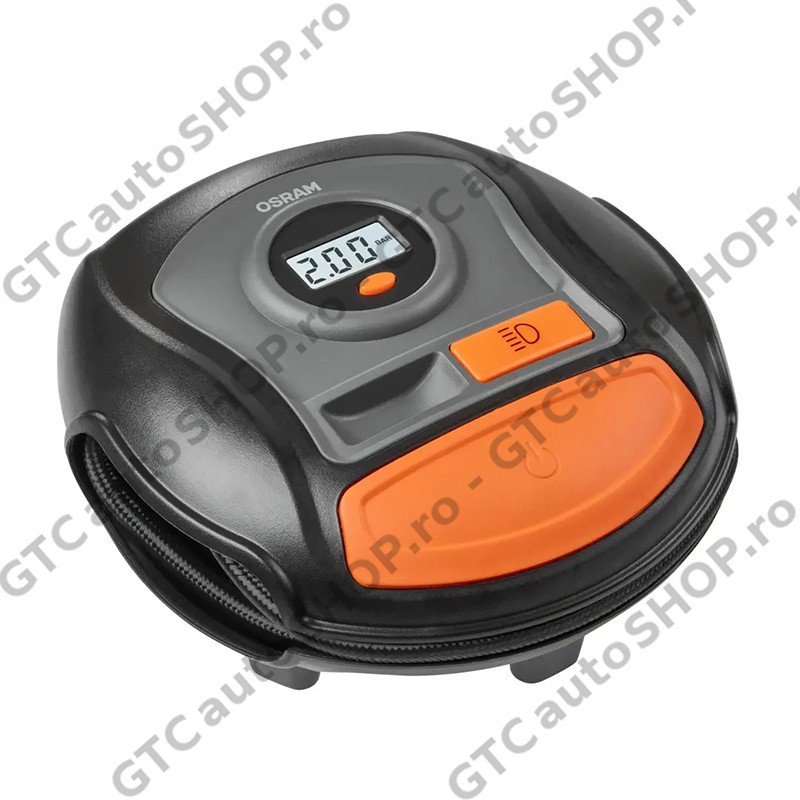 Compresorul digital Osram OTI400 poate umfla o anvelopa dezumflata in intregime in 3,5 minute. Avand un timp de umflare atat de rapid, timpul petrecut pentru intretinerea anvelopelor este redus. Include un ecran digital iluminat si o lumina LED alba pentru iluminare maxima in intuneric. Designul plat al OTI400 face unitatea stabila in timpul utilizarii, iar cablul care se ruleaza elimina orice fire inestetice si te ajuta sa revii pe drum mai repede. Vine complet cu un set de trei mufe adaptoare pentru anvelope de bicicleta, mingi si alte obiecte gonflabile.