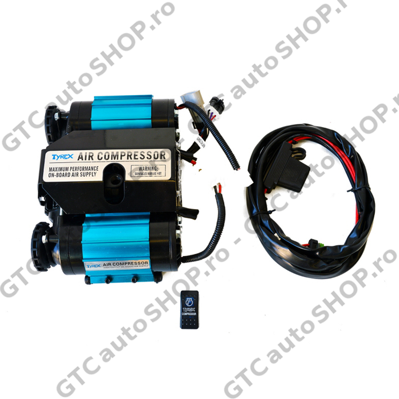 Compresor Tyrex cu 2 motoare, pentru actionarea diferentialului blocabil tip air-locker dar si pentru umflarea rotilor masinii, in special a celor cu dimensiuni mari.
