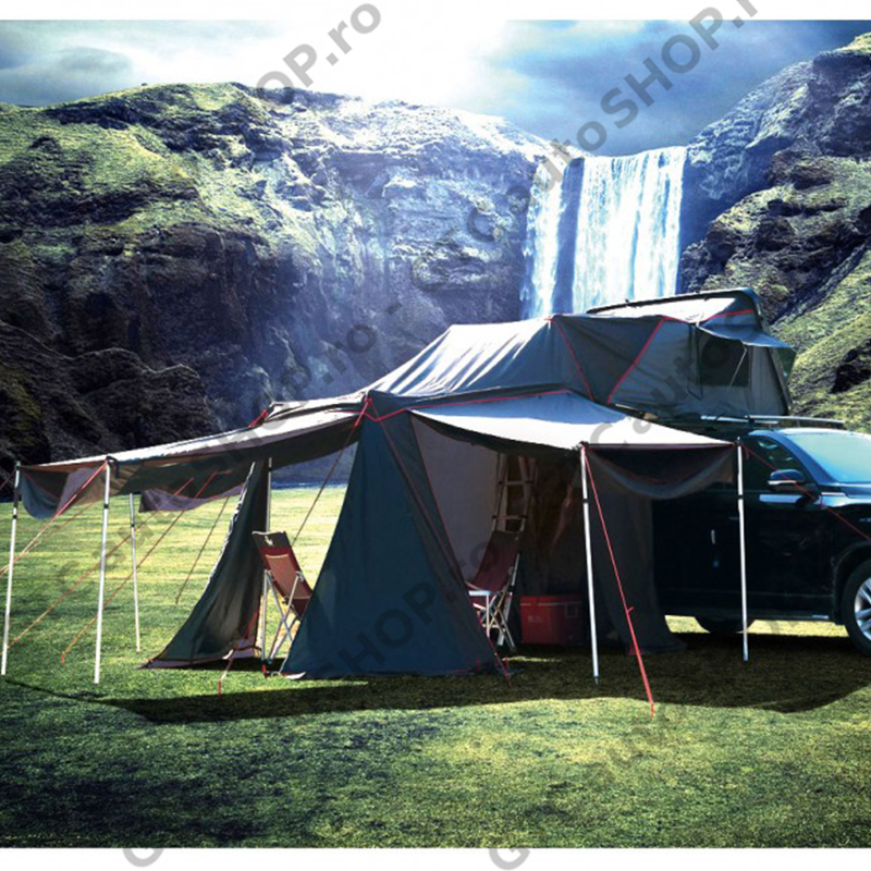 Anexa pentru cortul Bull Face FEZ completeaza spatiul de camping, fiind o necesitate in orice expeditie sau sesiune de camping. Aceasta anexa ofera o zona suplimentara de discretie si comfort atunci cand este montat cortul de plafon. Avantajul acestei anexe este ca poate fi folosita si ca marchiza atunci cand este intinsa si fixata cu bete de sustinere. Se monteaza si se strange foarte usor.