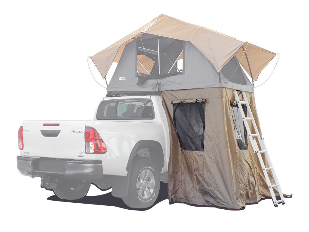 Această anexă spațioasă este realizată din materiale durabile, rezistente la intemperii și respirabile și este un accesoriu indispensabil pentru cortul Front Runner Roof Top Tent.