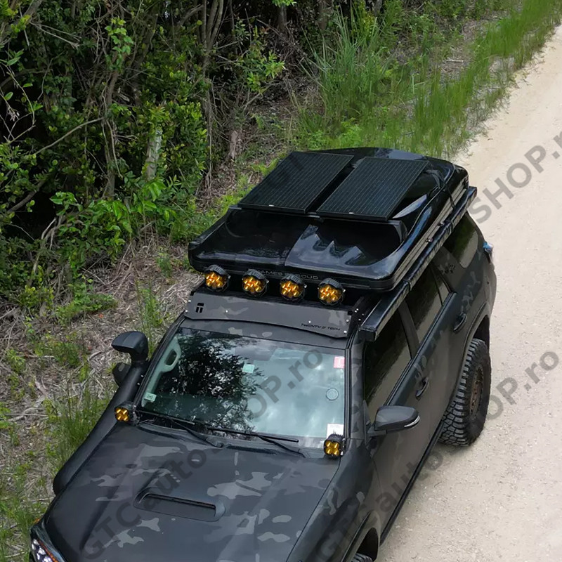 Una dintre cele mai mari inovatii ale cortului James Baroud, este posibilitatea de a adauga bare de incarcare optionale, concepute pentru a transporta echipamente suplimentare deasupra cortului. Datorita designului si tehnologiei Frontier, acum poti transporta obiecte voluminoase precum placi de surf, caiace sau panouri solare deasupra, iar cortul va continua sa se deschida si sa se inchida cu usurinta.