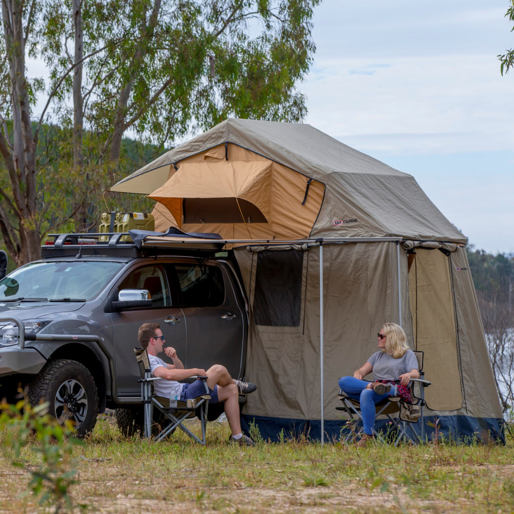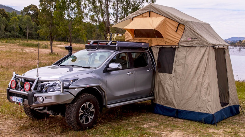 Cort ARB model Simpson 3 cu montare pe un portbagaj sau pe bare transversale. Include si anexa de cort de dedesubt.