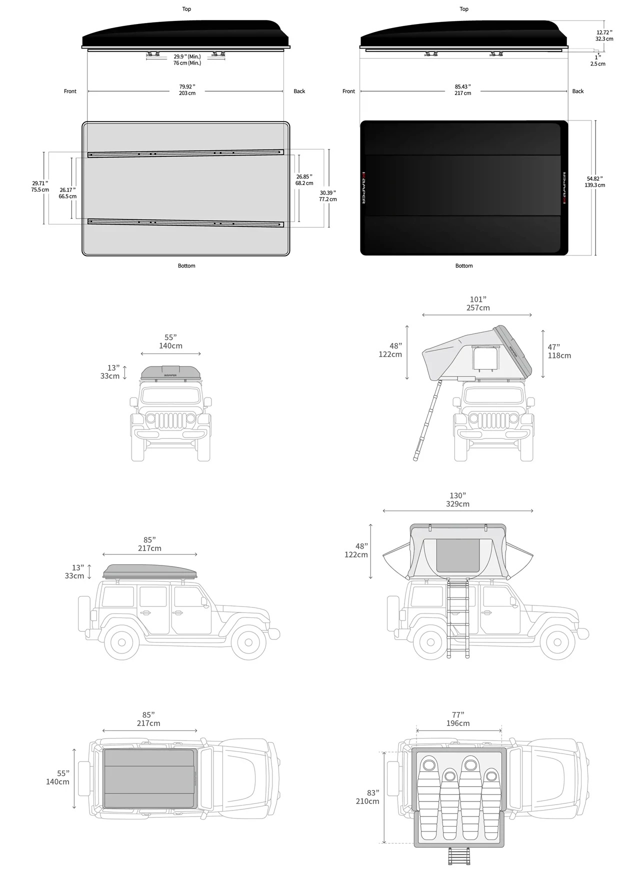 • Sarcina maximă admisă a cortului: 408kg (in limita greutății maxim admise pe portbagajul autovehicolului)