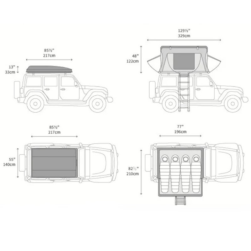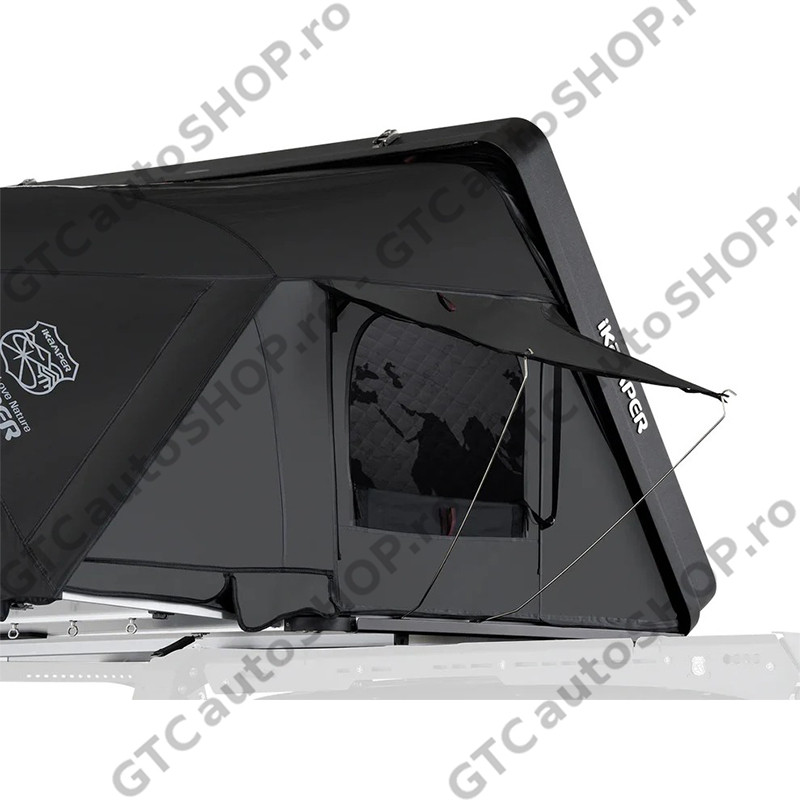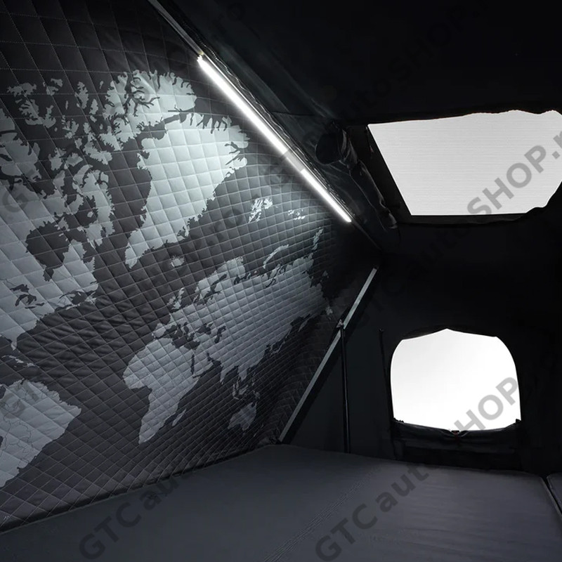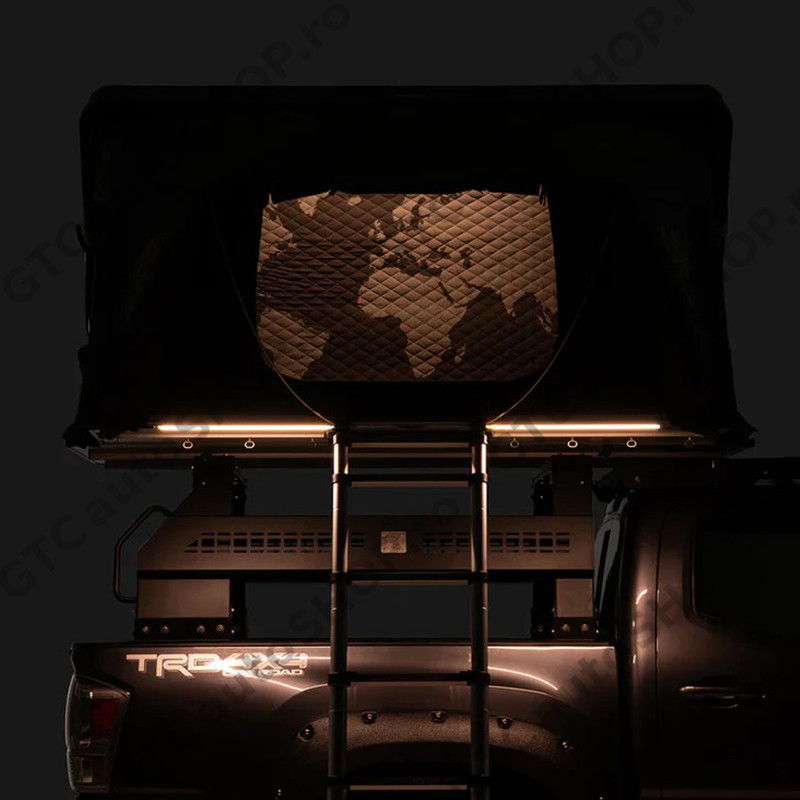 Varianta DLX ofera acelasi design, configuratie si spatiu interior precum modelul standard Skycamp 3.0 negru mat (Rocky Black), dar si o serie de optiuni suplimentare care sporesc confortul si experienta de camping.